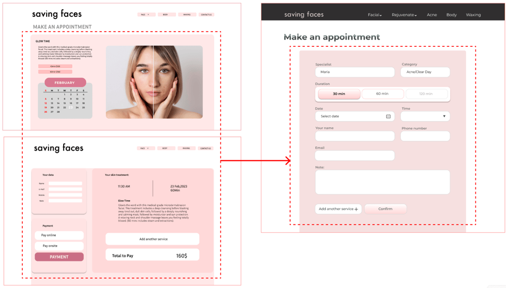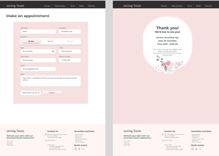 Based on usability testing, we merged the frame of day and time selection with the frame of customer information. This combination streamlined the booking process, making it more convenient for users.