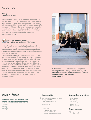 Saving faces is a skincare brand based in Los Angeles, founded by two friends, focusing on organic facial treatments, massages, and waxing services. This brand strives to meet diverse skin needs and preferences.